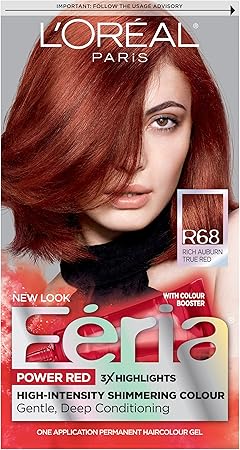Amazon Com L Oreal Paris Feria Multi Faceted Shimmering Permanent Hair Color R68 Ruby Rush Rich Auburn True Red Pack Of 1 Hair Dye Chemical Hair Dyes Beauty